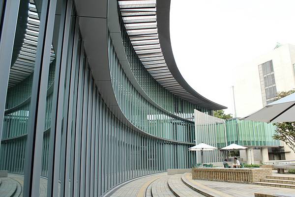 一個安置在原有建築呈15度角,當作通往圖書館的通道;