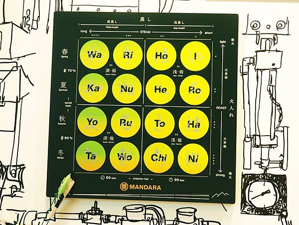 依茶葉「深/淺蒸時間」(味覺及色澤不同)×加熱火力(香氣差異)分門別類,