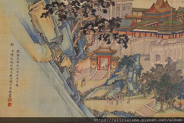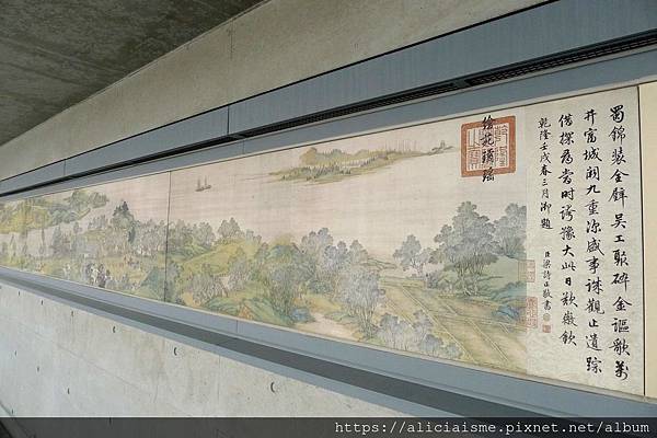 又或沿著畫作水池旁的碎石步階,