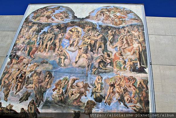 壯觀瀑布傾洩而下,襯托出米開朗基羅筆下長、高各達1430×1309公分《最後的審判》的恢弘氣勢,