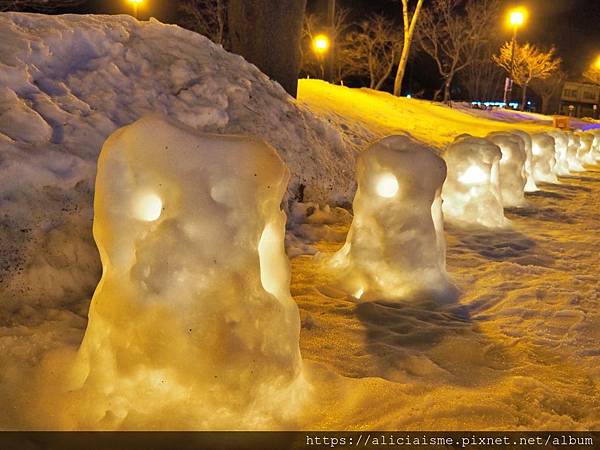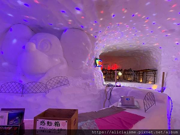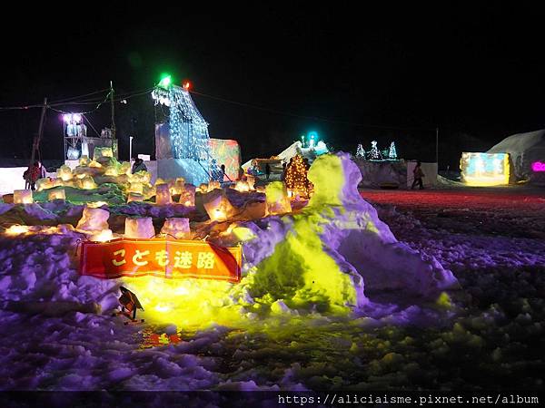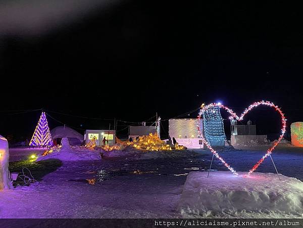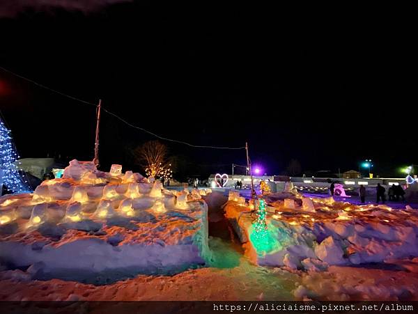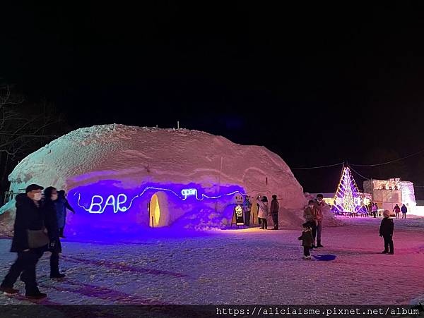 並有多座巨大雪雕、雪之迷宮、溜滑梯,及最受歡迎的雪屋Bar等。