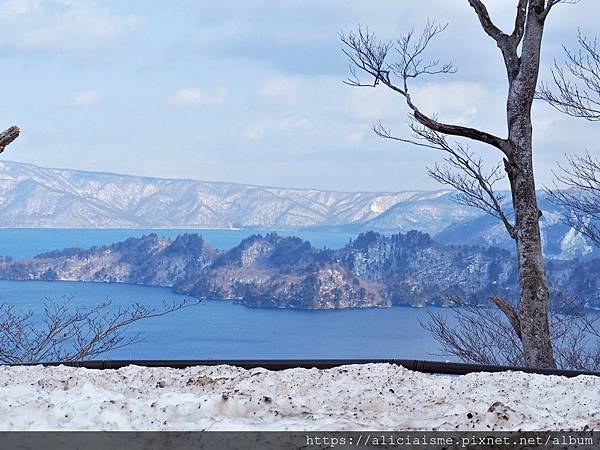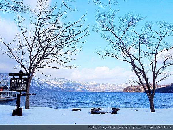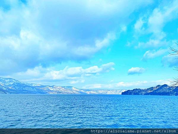 冬雪包圍的十和田湖,藍白淨色,詮釋天地。