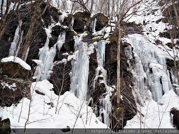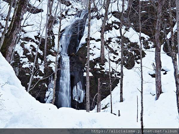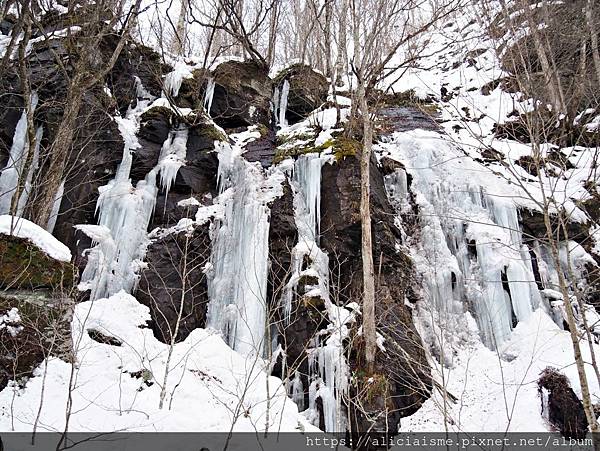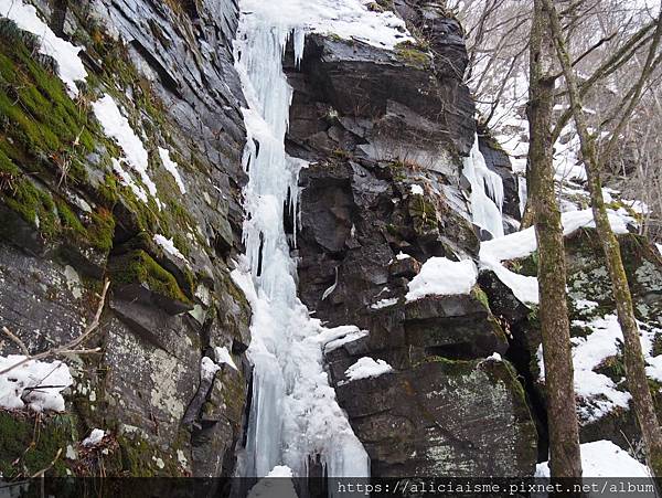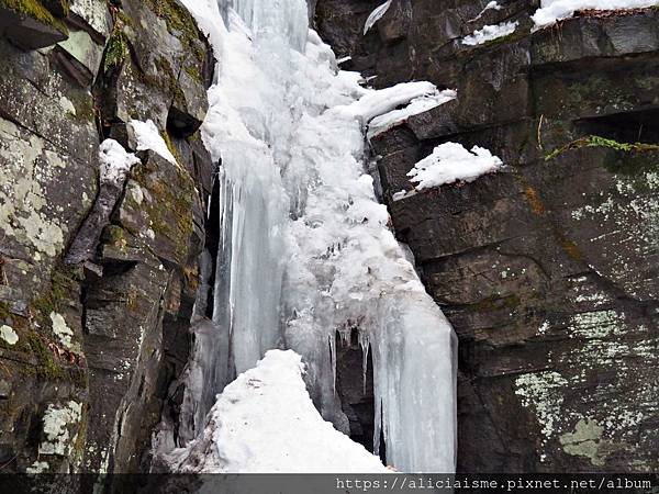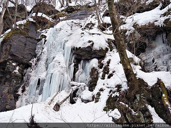 選擇了停留結成冰瀑的「馬門岩瀑布」、