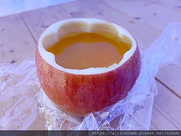 和朋友各點了不同的飲品,我是以蘋果盛裝的梅酒,