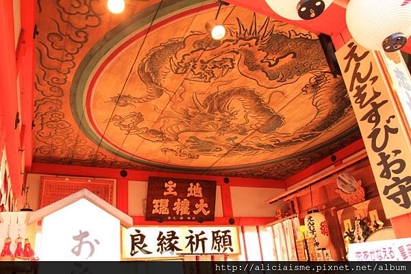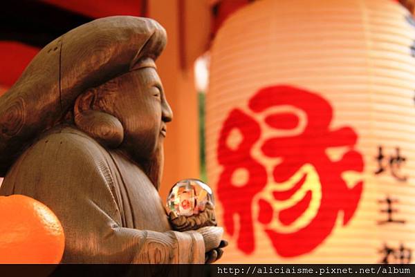 不過現今的地主神社幾乎跟戀愛姻緣畫上等號,小小的社境,參道上大燈籠上的「緣」字,吸引無數善男信女來此祈求良緣。