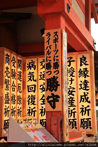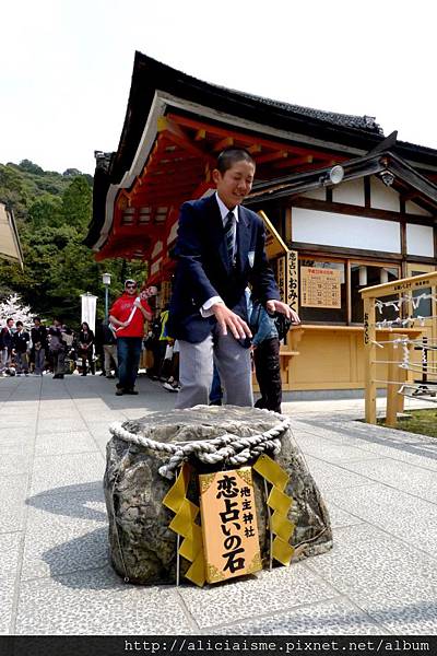 當然結果是波折的也別氣餒,記得敲響另一側的「幸福鑼」,讓聲響通達愛神之處,祈求愛神恩賜良緣。神社雖小,但因歷史久遠加上名氣大,就曾有不少廣告特別來此取景,尤以戀愛占卜石為主題,而衍生的結緣周邊商品更是琳瑯滿目,一看,連取水的柄杓都有著各式祈願祝福,看來真待有心求緣人來心領神會這奇妙的緣份了!