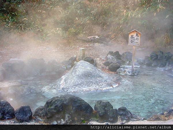 倒是「鬼の茶釜」池內高溫冒煙,淡淡的茶香綠,這命名還真符合意境。