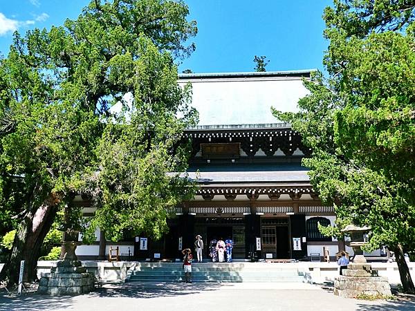木造白牆的本殿,因曾遭受地震毀損而重建於1964年,