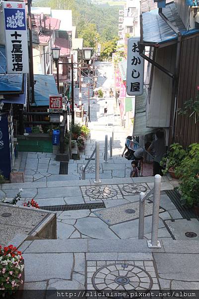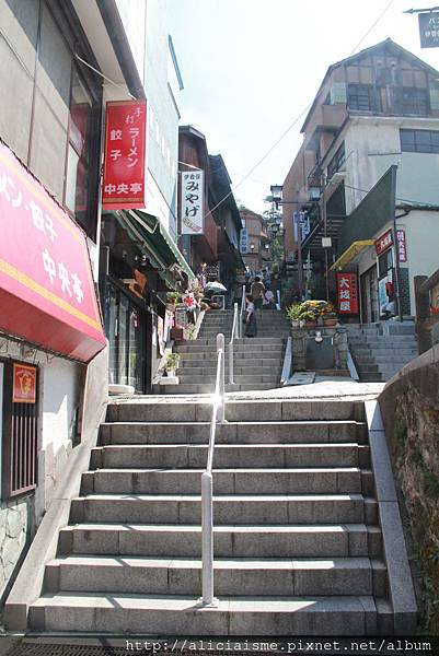 在這條長達300公尺的石砌階梯,湯煙熱氣彌漫整條街道,