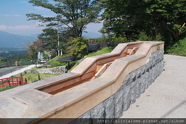 另在石階廣場也以溫泉水打造小小的溫泉瀑布「湯滝」。