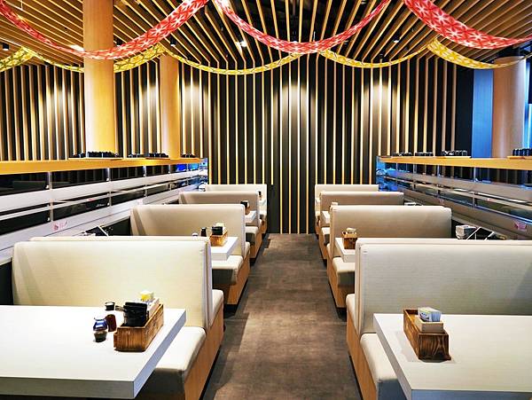 一抬頭,名古屋傳統的「有松紮染」布幔優雅地綴飾在天井,