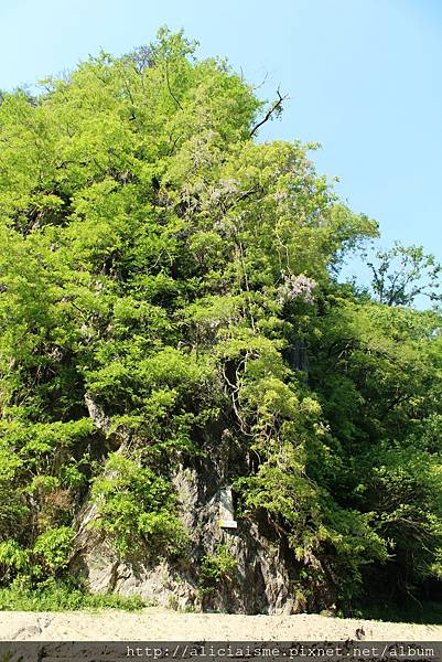 「鏡明岩」,一聽名字大概便懂其意,因朝陽照射水面,閃爍的波光反射在岩壁上,讓岩壁宛如一面鏡子,只是我來訪時已是下午,陽光已來到另一側。倒是對側的「藤岩」上,正好殘留紫藤高掛在岩,也算幸運遇上這季節,更添情趣。