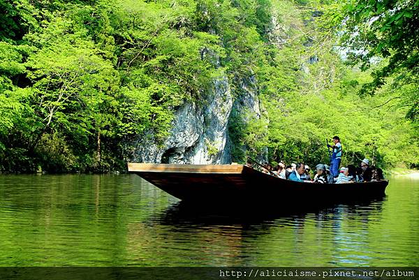 倒是女船夫千葉小姐一派輕鬆,她邊搖著槳、一邊解說沿岸石灰岩壁名字由來、高度及特色。