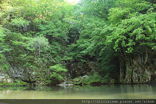 多年前刻意挑了紅葉季節前來,以為那是猊鼻溪(げいびけい)的最精華,今日再訪,正值東北初夏新綠,艷陽高照,可能調整過時刻表原因吧!從宇都宮搭乘東北新幹線「山彥」號在「一之關」站放行李、轉乘地方線,不急不徐,也沒浪費絲毫時間,很快便來到「猊鼻溪」站。