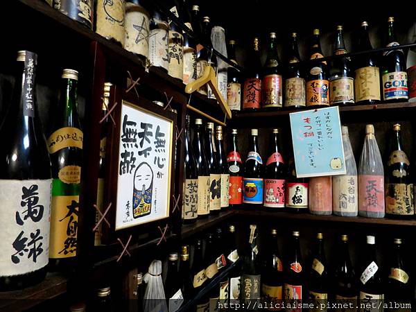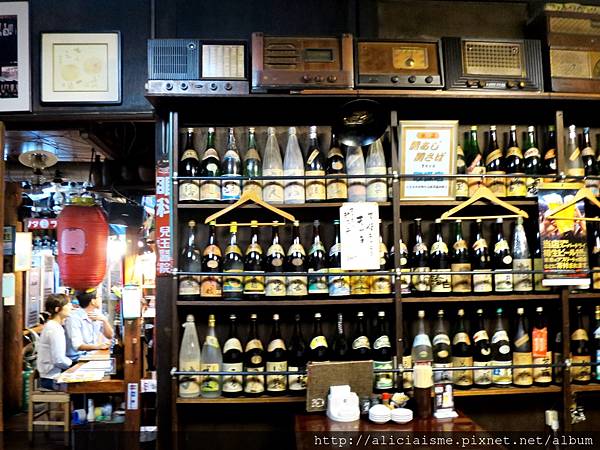 300支左右來自九州各地的地酒為牆飾,古老收音機、皮箱、各式懷舊小物、海報等,空氣彌漫濃濃的庶民好味,我們坐的這用餐空間裡,和式的榻榻米坐區,僅6桌數,還沒選菜,就愛上這用餐氛圍。