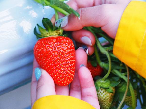 我前來時,雖然蘋果收穫季剛結束,但還好冬季草莓已登場。