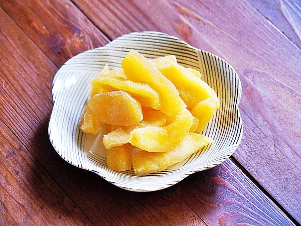 雖不知道果乾的品種,上方又裹著一層淡淡糖粉的果乾,