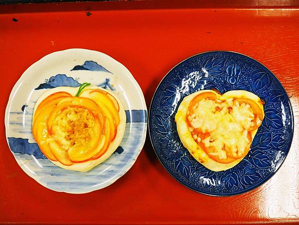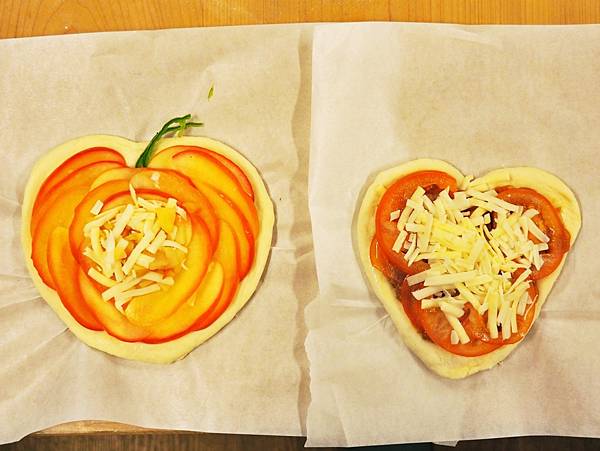 我做了個蘋果造型的蘋果披薩、一個最愛的蕃茄起司披薩,