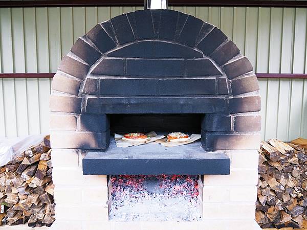 戶外剛打造好的披薩窯,在備好料的廚房裡,自製自己喜愛口味的披薩,