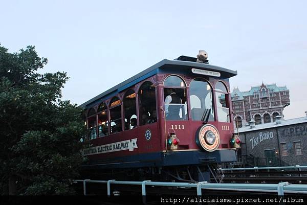 順道一提,園內有許多好玩,且值得體驗的交通工具,不論是「迪士尼海洋電氣化鐵路」(高架電車,可利用夜晚搭,人潮較少)、蒸汽船的海洋渡輪航線、大都會交通工具(走平面道路,較不需要大排長龍),可以有不同於步行的視野,瀏覽園內景色,雖像是歇歇腳行程,其實一點也不,因幾乎都得排上好久。