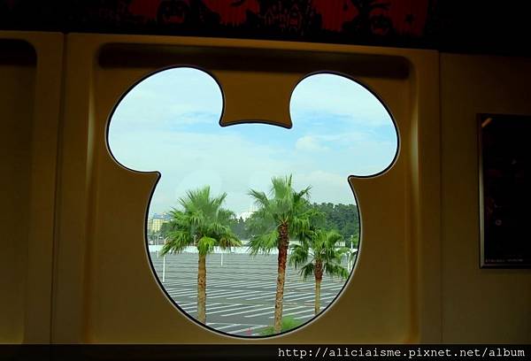 但千萬別因為想省錢,用步行方式,因為還沒開始玩,大概體力都快耗盡了。建議下車後,來到「度假區總站」搭乘園內的單軌電車,不用擔心,這是單向式的園內循環列車,搭乘2站(行經迪士尼樂園站、海濱站),就可以來到海洋了。單向式的園內循環列車,列車車窗、手把都是米奇頭造型,可愛極了(若僅到海洋,可以購買單程/210日圓即可,不需要買一日券)。