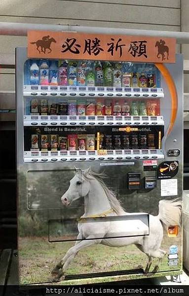 不僅繪馬,連販賣機也都以勝馬為飾。