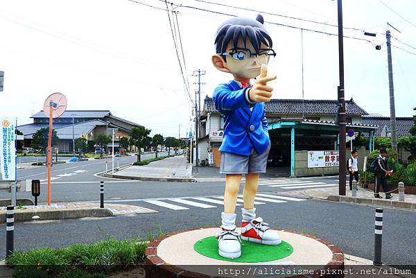 正比著招牌動的柯南雕像迎接著觀光客的到來,
