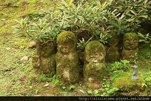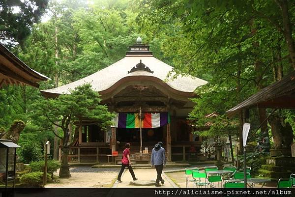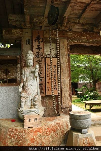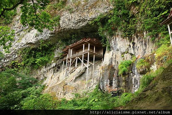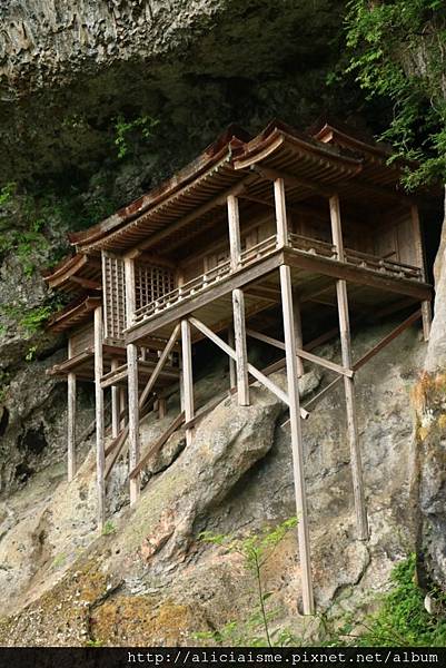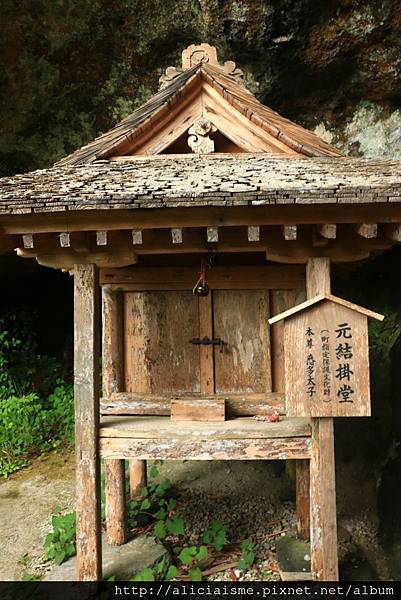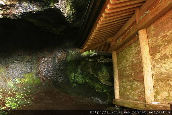 行經平安後期建立,裡面供奉修行僧所抄的經文的「納經堂」,,沒多久便是「觀音堂」。三佛寺是日本的神道教,講求的是追尋自然智的山岳信仰,或許之前已到訪多個山岳信仰的寺院,此時反而覺得熟悉。順著殿堂後方岩石洞窟繞一圈,用此喻做母體的胎內巡拜,代表重生,這跟石川縣的那谷寺類似。