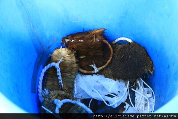 (看著桶子內都是登山完的人丟棄的草鞋,磨成這樣有點嚇人,寺方也建議可回家留念)