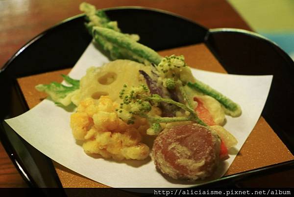 所有蔬菜雖在沾上麵衣後油炸,但外酥內則吃得到蔬菜鮮甜。