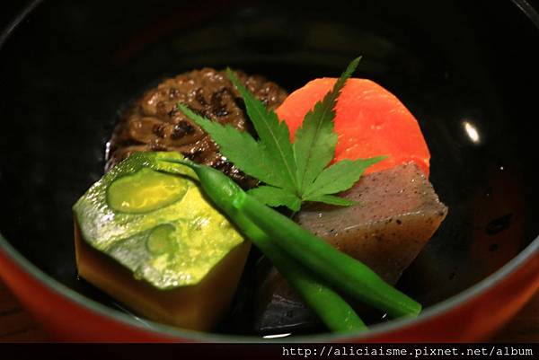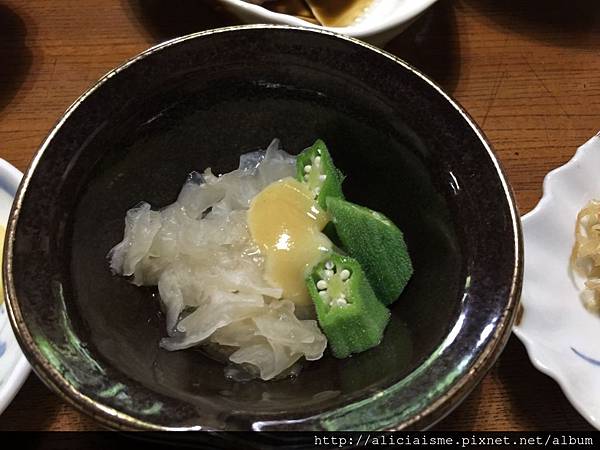 白木耳與秋葵的味噌涼拌菜,在台灣很少會將這兩食材合併運用。