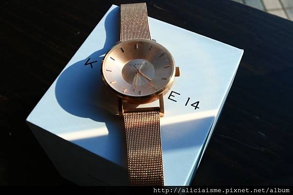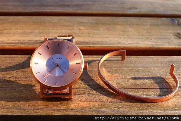 但先前在日本時,發現KLASSE14門市不少,所以有到實體店家看過顏色後才下單,對於向來喜歡穿著單一或低彩度色調服飾的我,倒是很喜歡這色系,加上它是我喜歡的大錶面(36mm),戴起來簡潔俐落,只是在店家看到同色系手環時,實在很喜歡,所以另外加購一只,在夏天與金錶一起配戴,實用性之餘,也更有些造型。