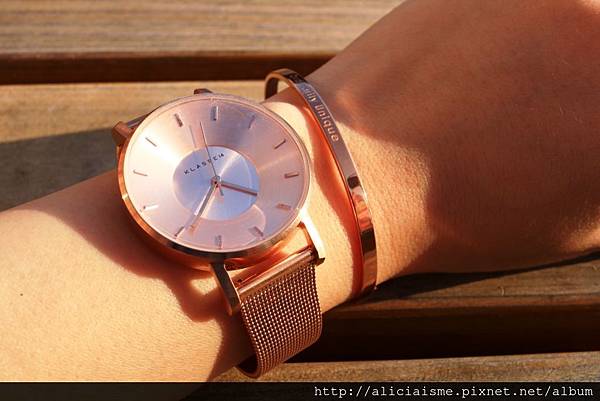 我選訂的是〔VOLARE玫瑰金不鏽鋼腕錶〕款式(錶帶可自行調整,見網頁左下的影片教學),“VOLARE”是義大利文的「飛翔」之意,我個人很喜歡其設計概念,以微微上彎的錶針,將這系列logo設計成如老鷹的翅膀,自由自在飛翔,跟我自己的工作、生活很類似,加上玫瑰金電鍍的不鏽鋼錶殼及網帶,各種服飾、場合都適合。玫瑰金雖是近年來3C商品的熱門色,但配戴在一般亞洲人的皮膚較不顯色,即便像我是屬於膚色偏白的人也一樣,選購前可自己斟酌。