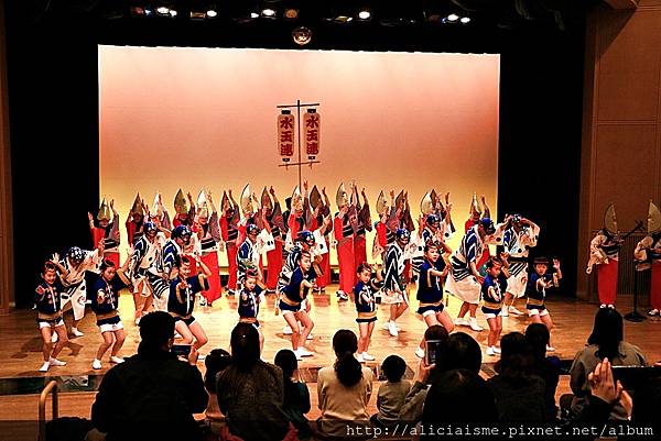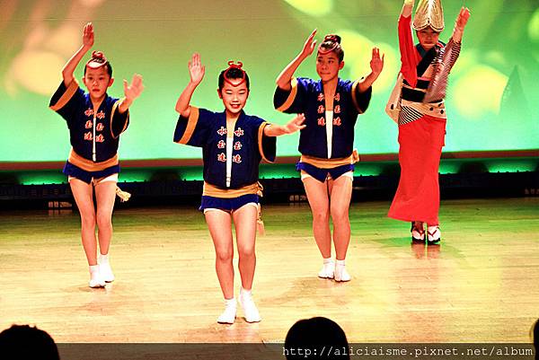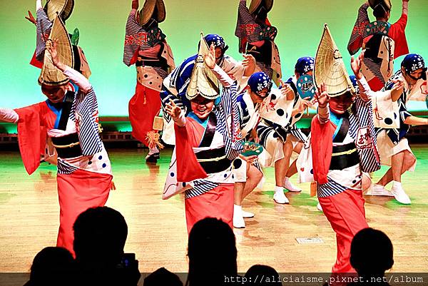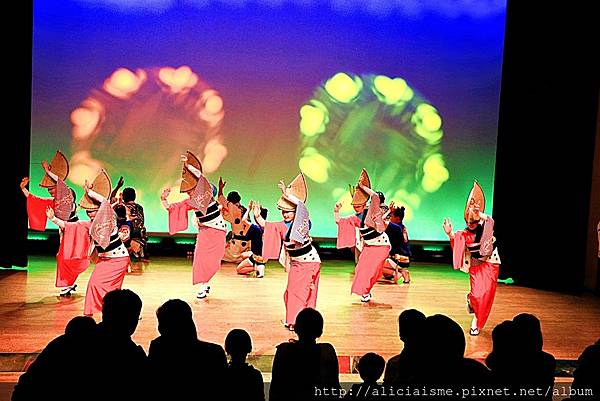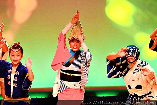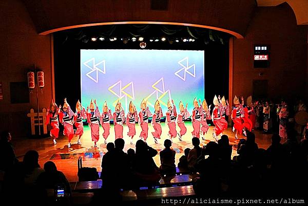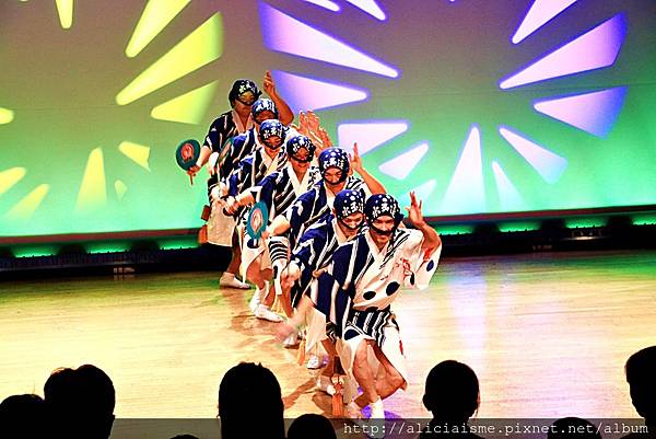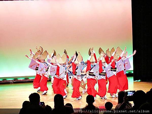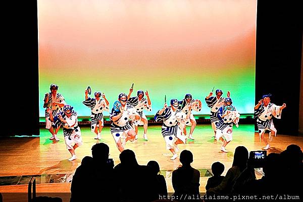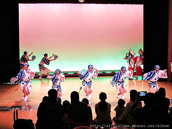 到了第二階段,在主持人慫恿下,要現場觀眾一同上來演出。觀光客顯得彆扭,日本人卻多數樂在其中,紛紛上台演出,一同前來的日本人一直要我也下場,本來覺得超尷尬的,禁不起台上熱鬧的呼喚,鼓起勇氣,下場跟著學著跳。(這段因人在舞台,都沒有辦法拍攝了)