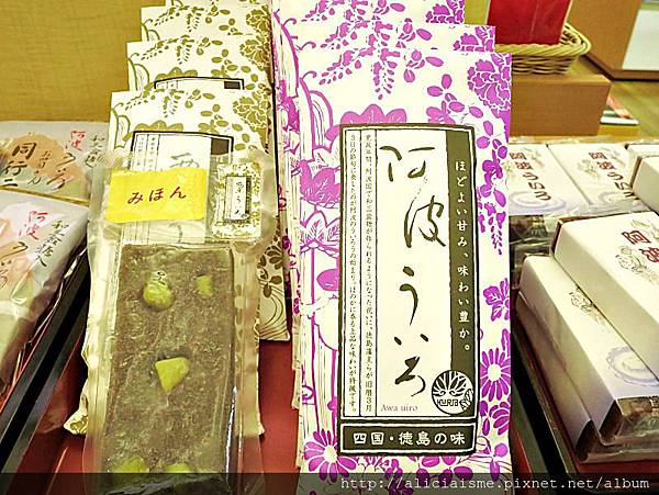 這是當地極代表的傳統蒸菓子,以米粉、餅粉、大納言小豆、阿波和三盆糖等食材製作而成,口感Q彈,除了用在慶祝傳統節日時,因便宜又好吃,常被當地人作為零食的小點心。我覺得有些像台灣過年吃的紅豆年糕,但口感較清淡且不甜。雖不少地方皆有類似的,發祥地也是眾說紛云,但至少德島市也是被名列知名的外郎餅名地。