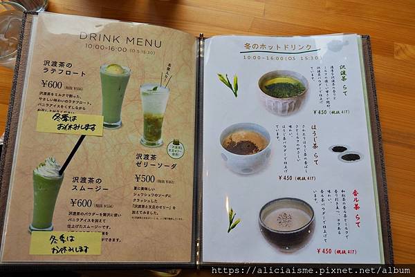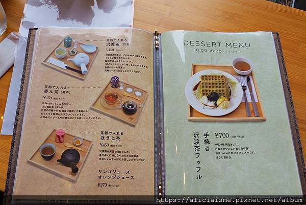 以新鮮澤渡茶為食材製成的各式甜點、定食,足以讓我們猶豫許久。