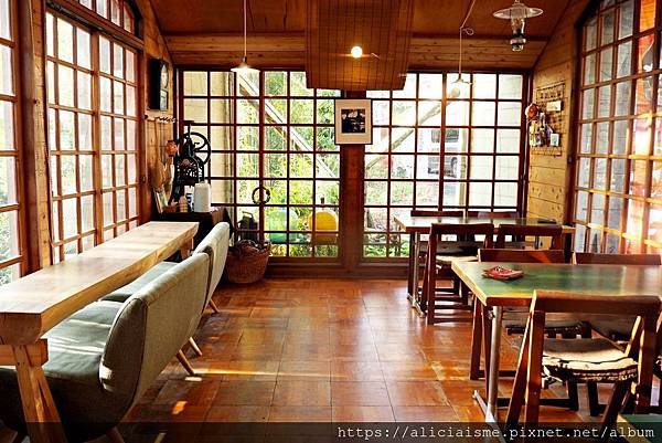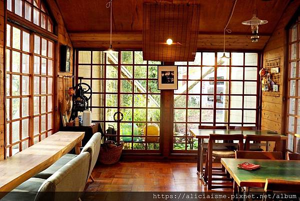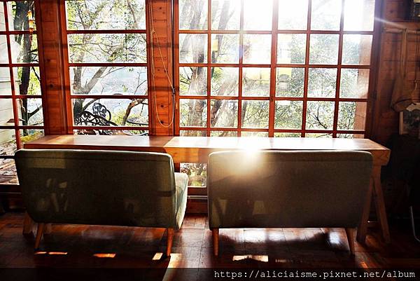 而咖啡館的窗扉也讓原本就是山林綠意如同在畫框裡作畫,