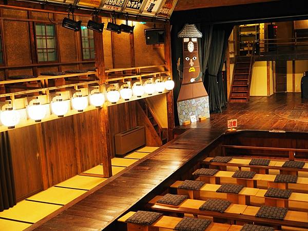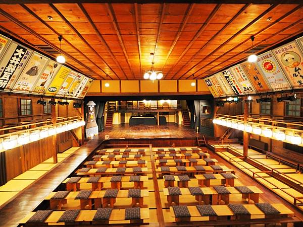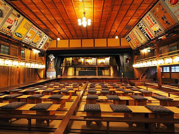 美麗的木造老建築,從座區至舞台、演員登台的延伸舞台「花道」、太敷座等