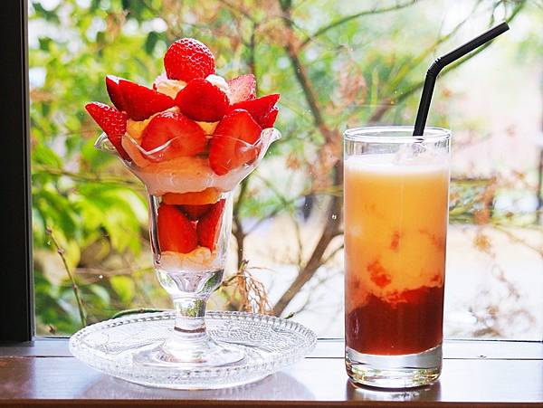 忍不住也點了草莓牛奶、草莓大福、一個草莓芭菲。