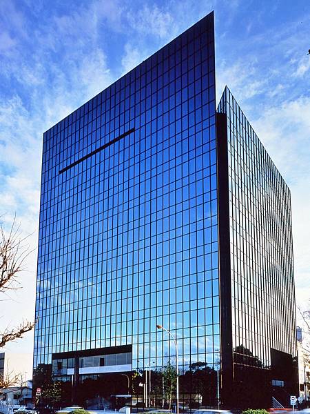 外觀是藍色的玻璃帷幕高樓,充滿現代科技感,