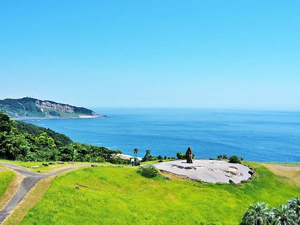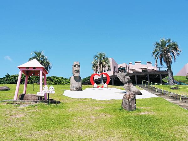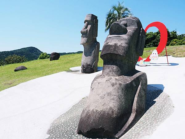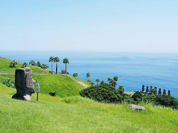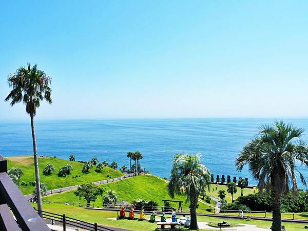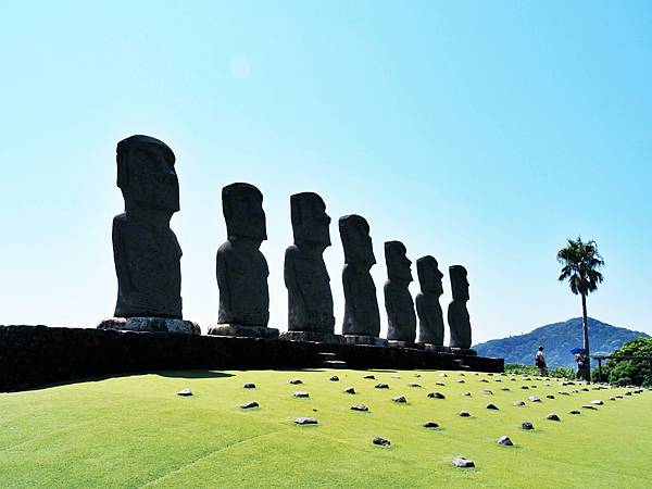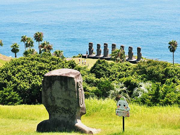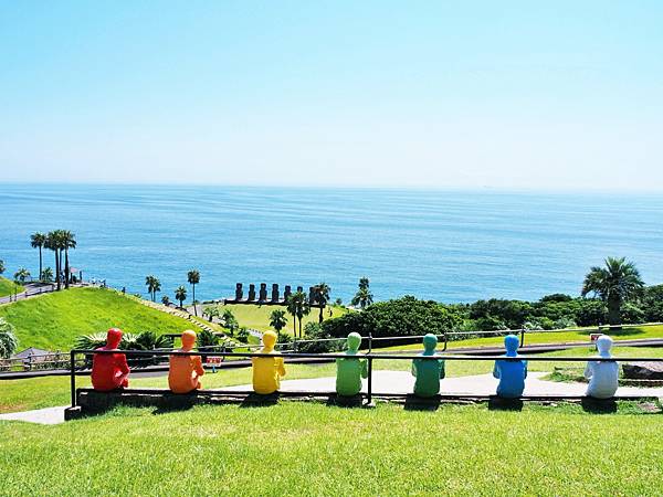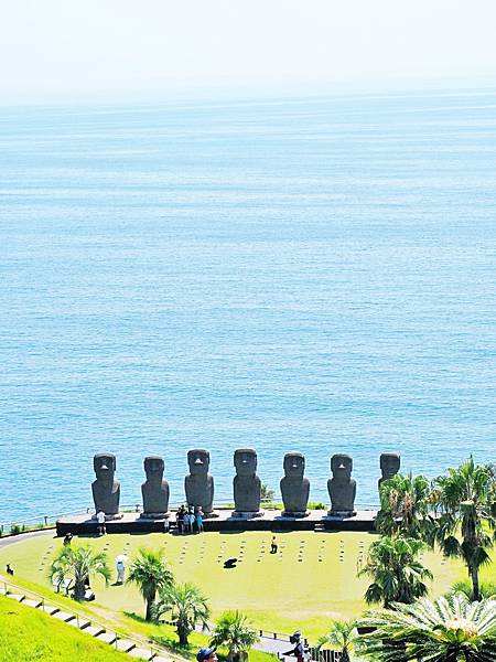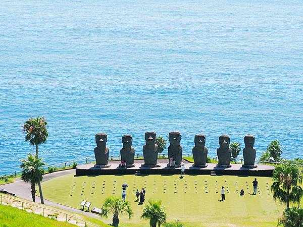 「Sun messe日南」內的摩艾石像們背對著蔚藍的太平洋,