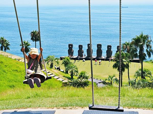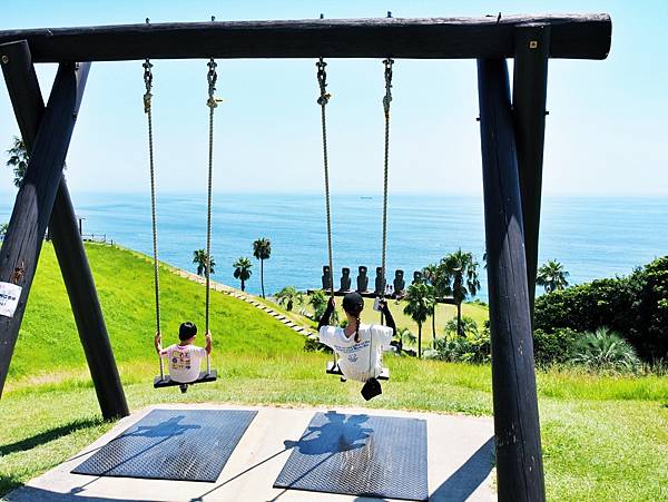 山坡上設有望見海的盪鞦韆,盪著、盪著,身心也跟著好開闊,開心起來。