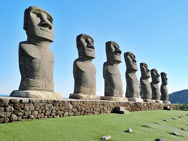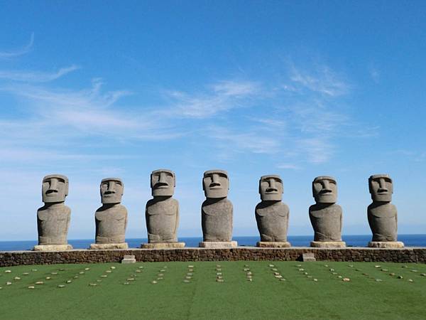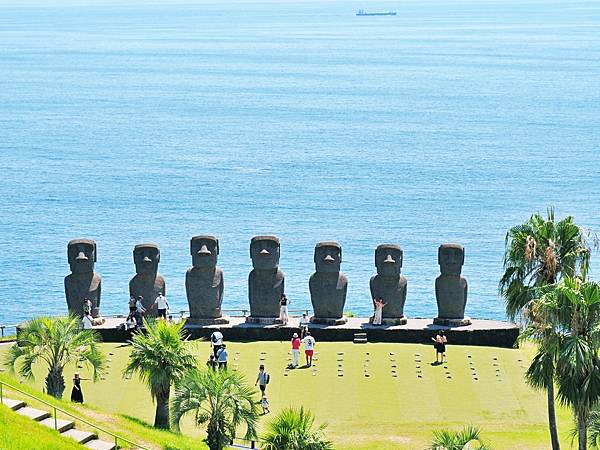 復刻已登入世界文化遺產的復活節島7尊摩艾石像,佇立在海側邊,