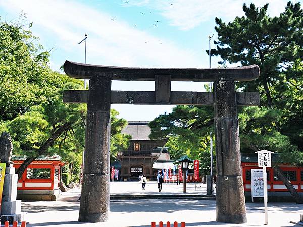 筥崎宮裡的「筥崎鳥居」,大柱分成三段建造方式,十分特別。