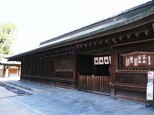 而拜殿則以切妻造檜皮葺的兩層屋簷建法,