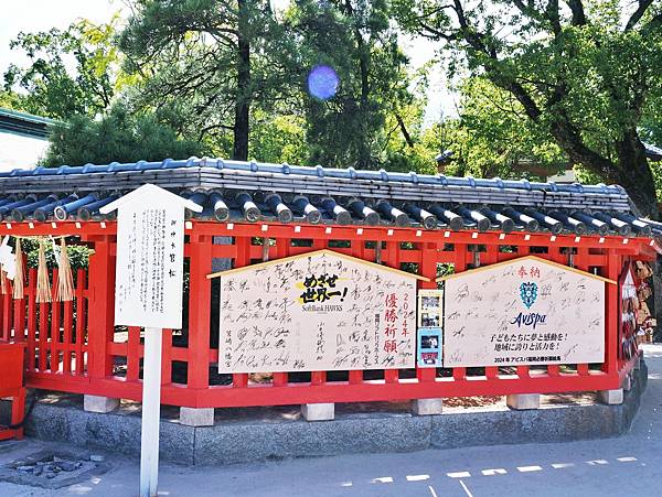 來到社境,巨大的繪馬上滿是信眾及許多大機構、球團等全員來祈願及簽名馬。