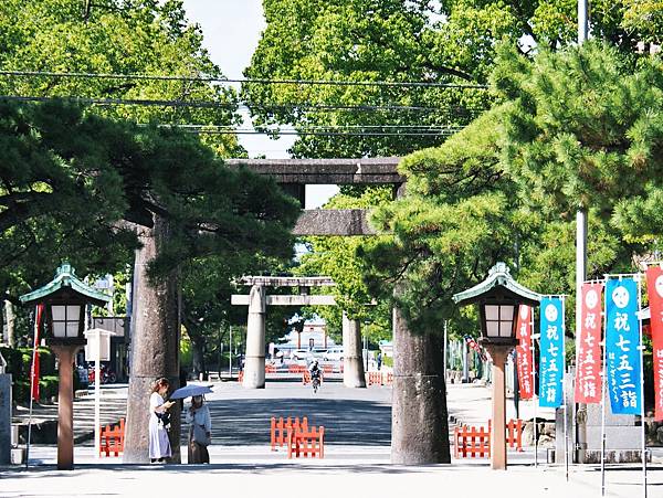 靠近本殿的一之鳥居轉個身,沿著鳥居的筆直視線,