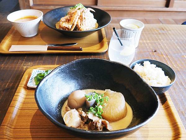跟朋友兩人各點了招牌的「渡り蟹つけ麺」(梭子蟹沾麵)及啤酒好搭檔的人氣關東煮。