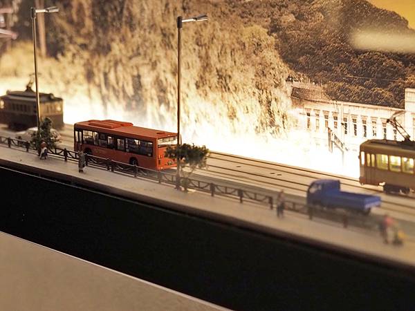 側邊則以松山市區為背景,伊予鐵模型、鐵道風景壁畫等,