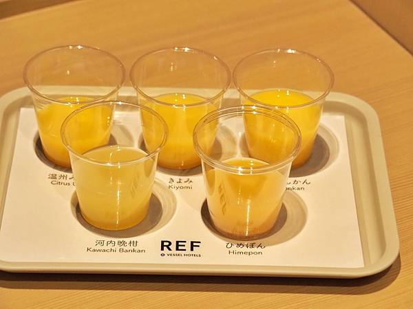 五種蜜柑果汁一起試喝比較,才知道每一種品種的蜜柑真的風味大有不同。